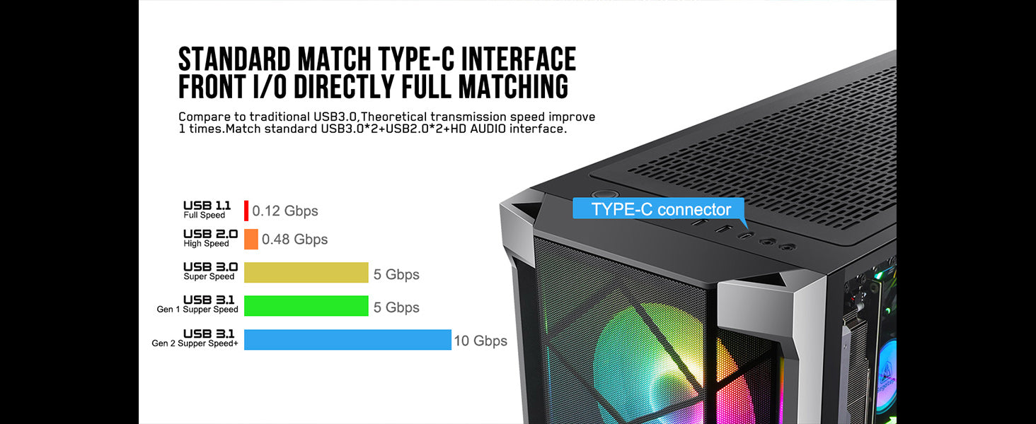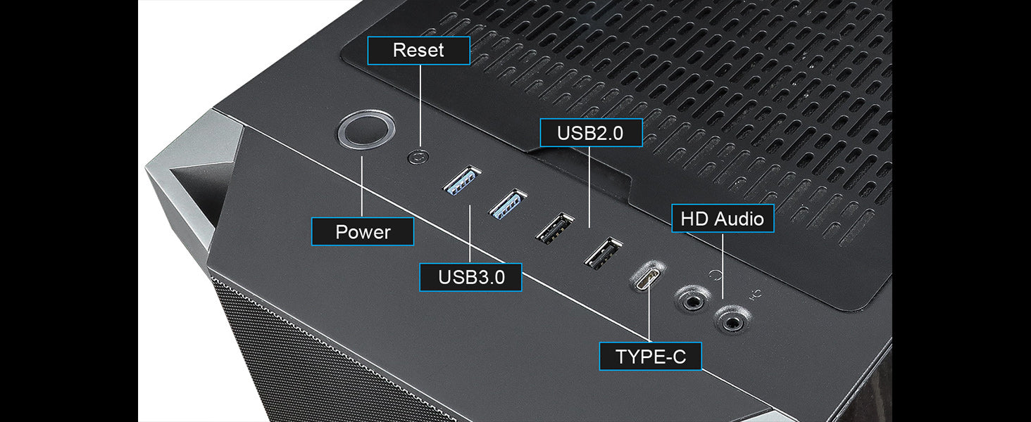 Cable Management: With an I/O port storage box on the top, which can easily accommodate external wiring such as DVI/HDMIM/USB. The back of the pc case main board and rear window are also equipped with velcro, makes wiring easy and intuitive