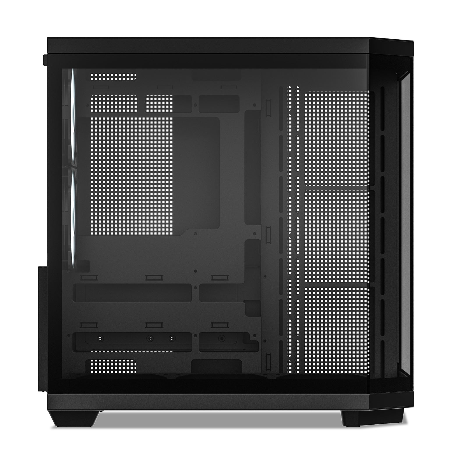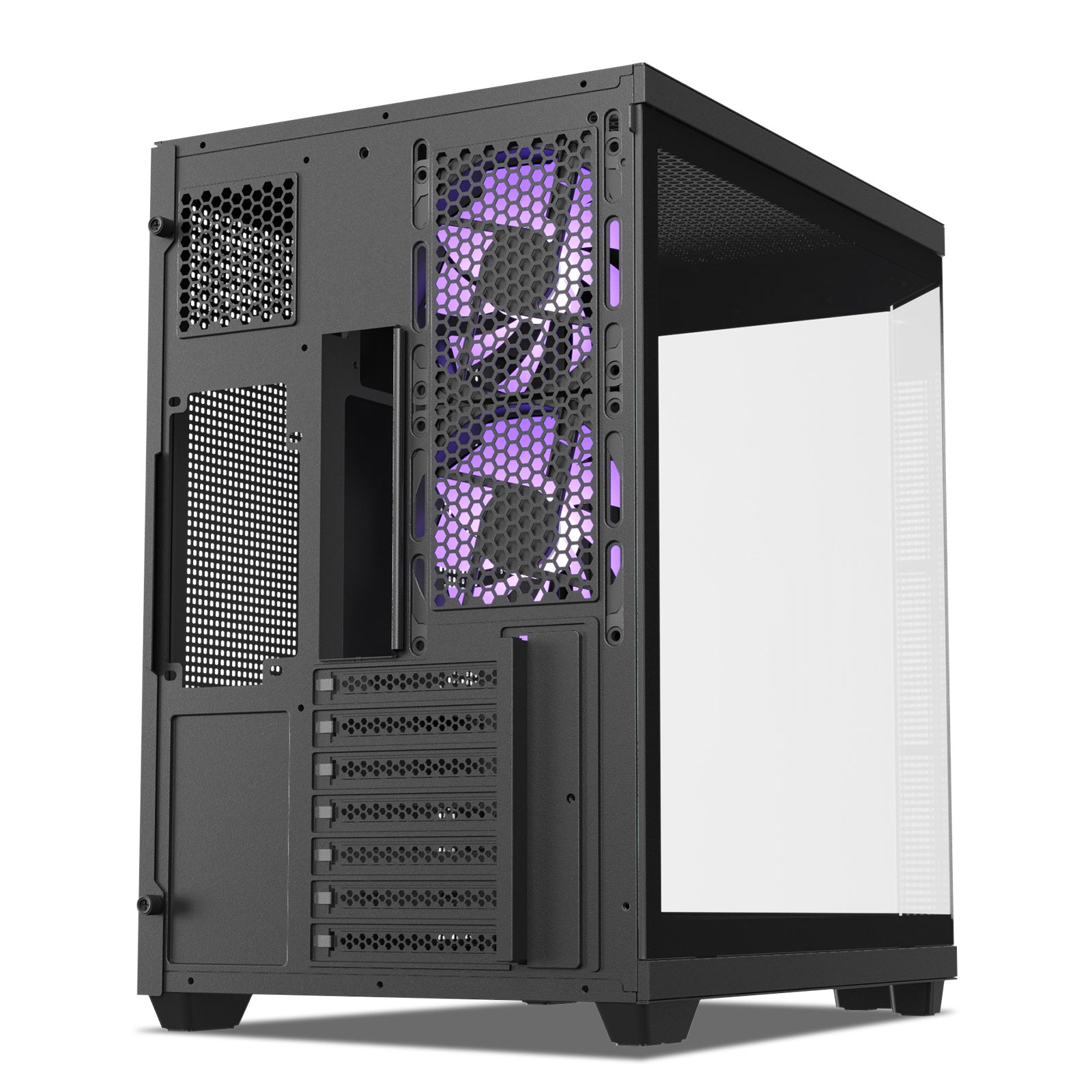 - Full View: Features three sides of high-clarity tempered glass, offering a panoramic view of your components and RGB lighting from the front and side